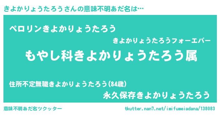 | 男性向けラノベタイトル風あだ名 | 『転生したらきよかりょうたろうだった件』 |