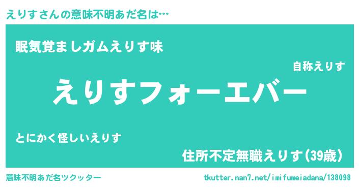 | 欧米人風あだ名 | 『えりすクリステル』『ダニエルえりす』 |