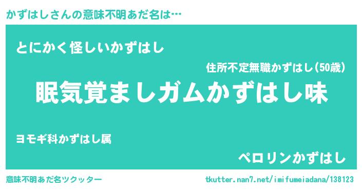 | 男性向けラノベタイトル風あだ名 | 『うちのかずはしが世界を掌握している!』 |