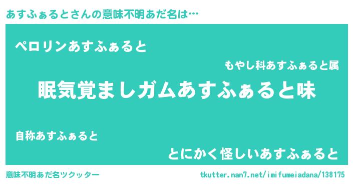 | 欧米人風あだ名 | 『ダニエルあすふぁると』 |