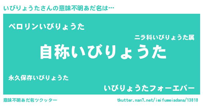 | 男性向けラノベタイトル風あだ名 | 『Re:いびりょうたから始める異世界生活』 |