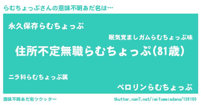 | 女子向けラノベタイトル風あだ名 | 『乙女ゲームの破滅フラグしかない悪役らむちょっぷに転生してしまった…』 |