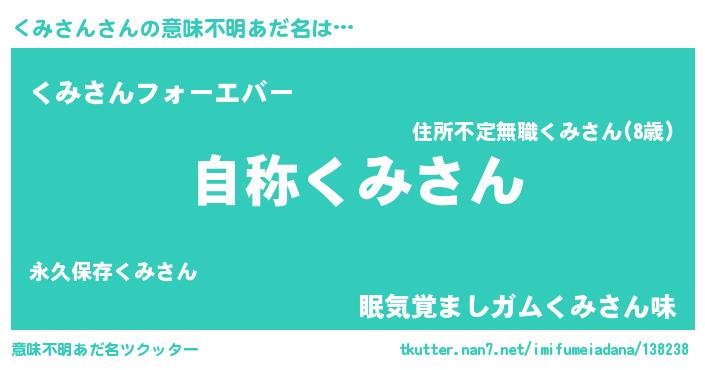 | 男性向けラノベタイトル風あだ名 | 『Re:くみさんから始める異世界生活』 |