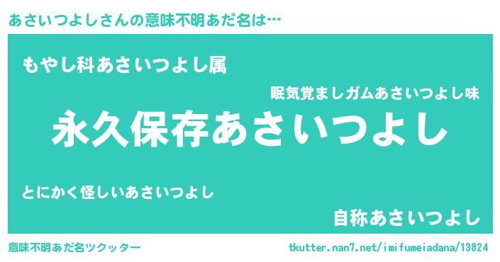 | 胡散臭い通販商品みたいなあだ名 | 『絶対に幸福をもたらす健康食品…その名も「あさいつよし」』 |