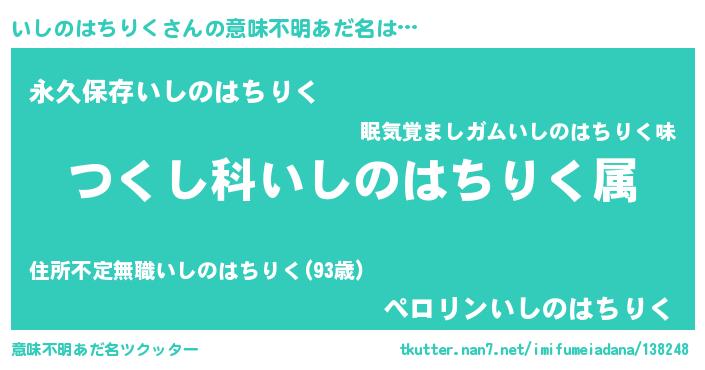 | 欧米人風あだ名 | 『トリンドルいしのはちりく』 |
