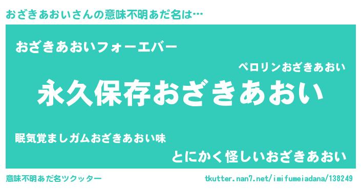 | 欧米人風あだ名 | 『おざきあおい・ステッグマイヤー』 |
