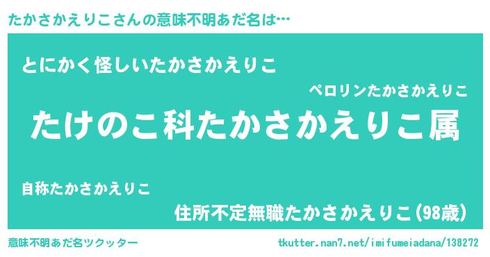 | 肩書あだ名 | 『たかさかえりこ中将』 |