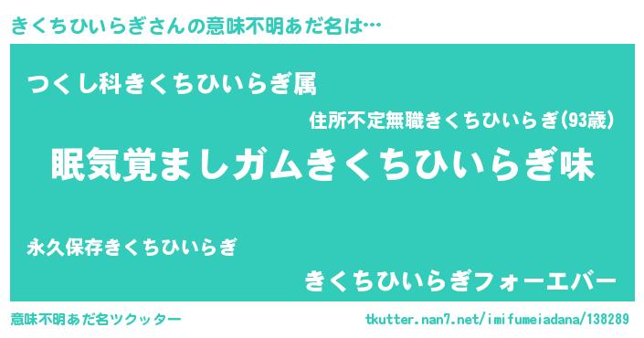 | ヘコむあだ名 | 『豆乳』『きくちひいらぎ(爆)』 |