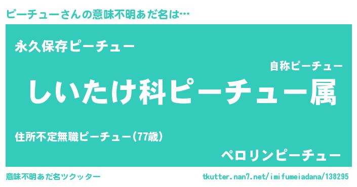 | ヘコむあだ名 | 『ピーチュー(震え声)』『ピーにー』 |