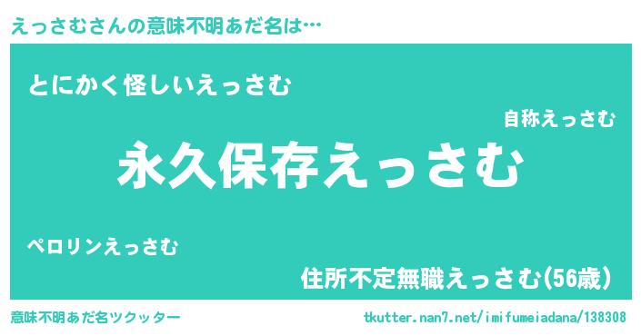 | ヘコむあだ名 | 『えっさむ(苦笑)』『えっお』『豆乳』 |