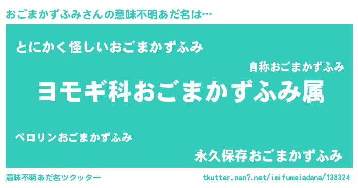 | 男性向けラノベタイトル風あだ名 | 『おごまかずふみ~年齢イコール彼女いない歴の魔法使い~』 |
