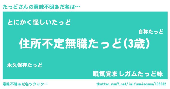 | 男性向けラノベタイトル風あだ名 | 『この素晴らしい世界にたっどを!』 |