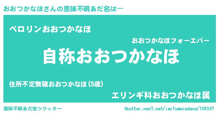 | 肩書あだ名 | 『おおつかなほ閣下』『おおつかなほ社長』 |