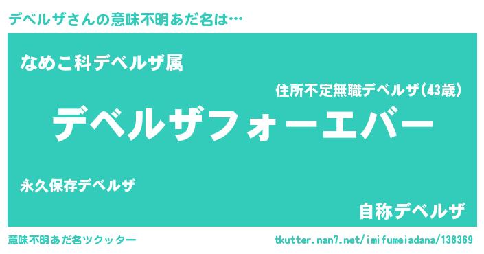 | 女子向けラノベタイトル風あだ名 | 『デベルザの雑貨屋さん』『闇のデベルザ』 |