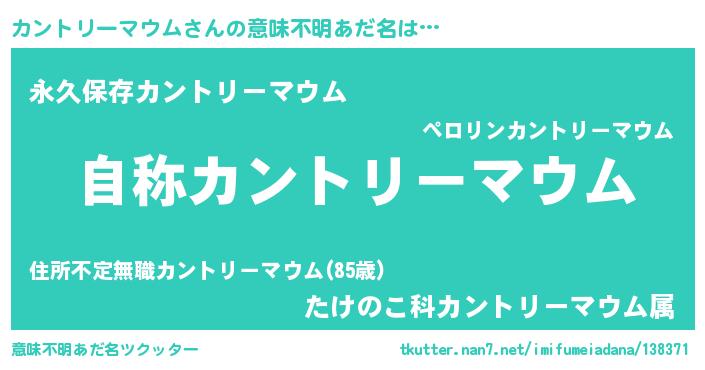 | 女子向けラノベタイトル風あだ名 | 『カントリーマウムアンティーク』 |
