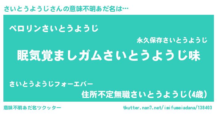 | ヘコむあだ名 | 『さいっふぃ~』『さいとうようじ(小並感)』 |