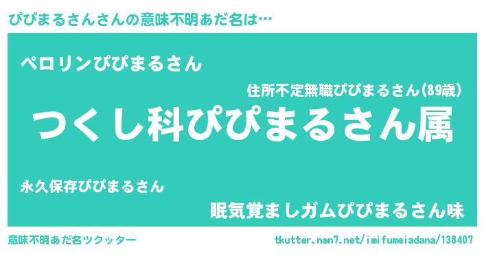 | 男性向けラノベタイトル風あだ名 | 『ぴぴまるさん~年齢イコール彼女いない歴の魔法使い~』 |