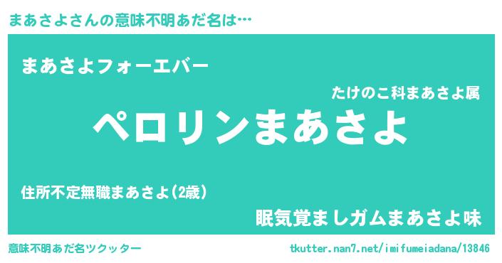 | 男性向けラノベタイトル風あだ名 | 『緋弾のマアサヨ』『まあさよの憂鬱』 |