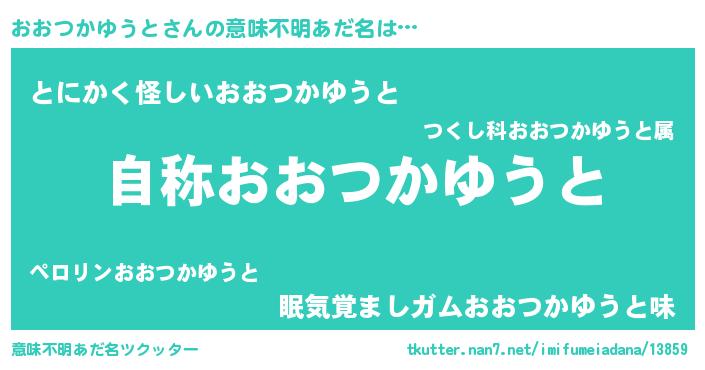 | 女子向けラノベタイトル風あだ名 | 『おおつかゆうとストレイドッグス』 |
