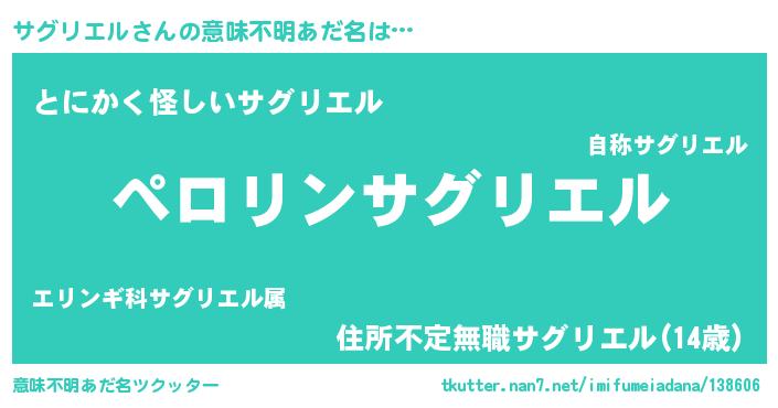 | 男性向けラノベタイトル風あだ名 | 『サグリエルの憂鬱』 |