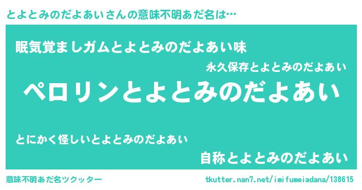 | 2回繰り返すあだ名 | 『とよとよ』『ぷらんぷらん』 |