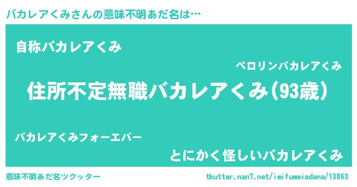 | 男性向けラノベタイトル風あだ名 | 『この素晴らしい世界にバカレアくみを!』 |