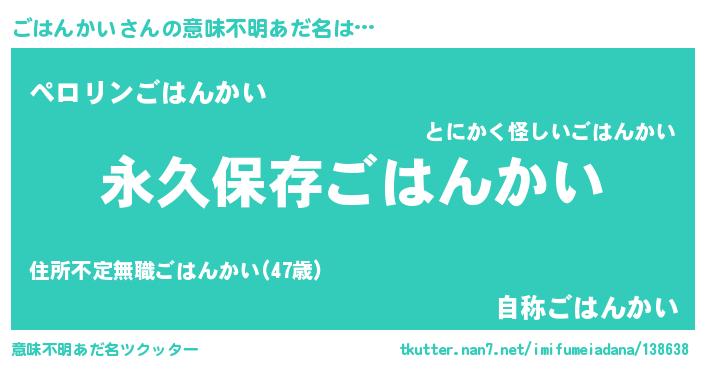 | ヘコむあだ名 | 『ごはんかい(遠い目)』『ごはもー』 |