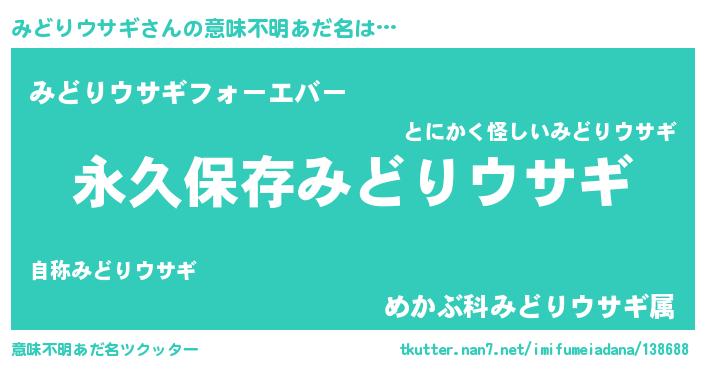 | 胡散臭い通販商品みたいなあだ名 | 『前代未聞の健康食品…その名も「みどりウサギ」』 |