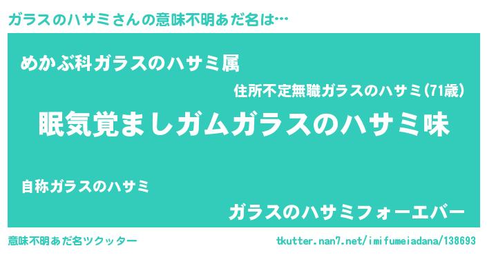 | 男性向けラノベタイトル風あだ名 | 『はたらくガラスのハサミさま!』 |