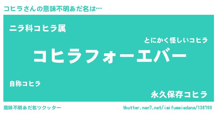 | ヒーロー風カッコイイあだ名 | 『ウルトラコヒラマン』『ネオコヒラ』 |