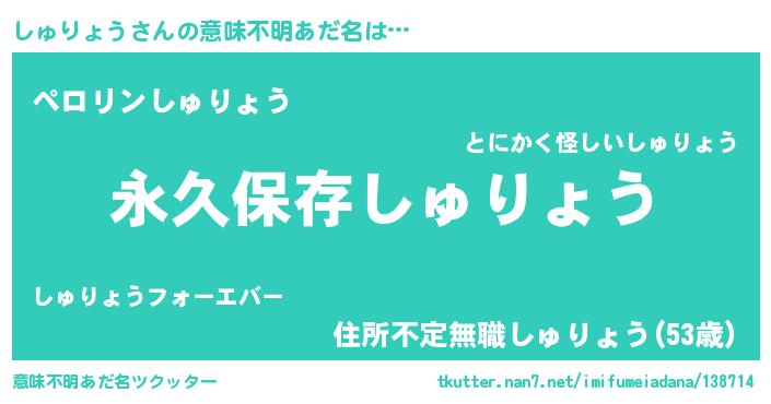 | 男性向けラノベタイトル風あだ名 | 『緋弾のシュリョウ』『しゅりょうの憂鬱』 |