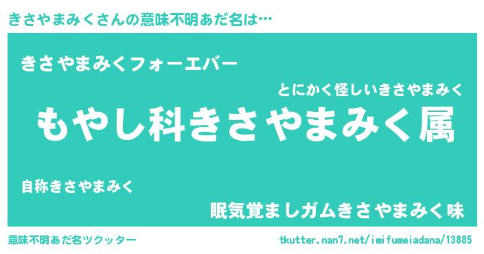 | 男性向けラノベタイトル風あだ名 | 『転生したらきさやまみくだった件』 |