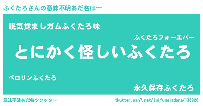 | ヒーロー風カッコイイあだ名 | 『黄金騎士フク』『正義の使者ふくたろ』 |