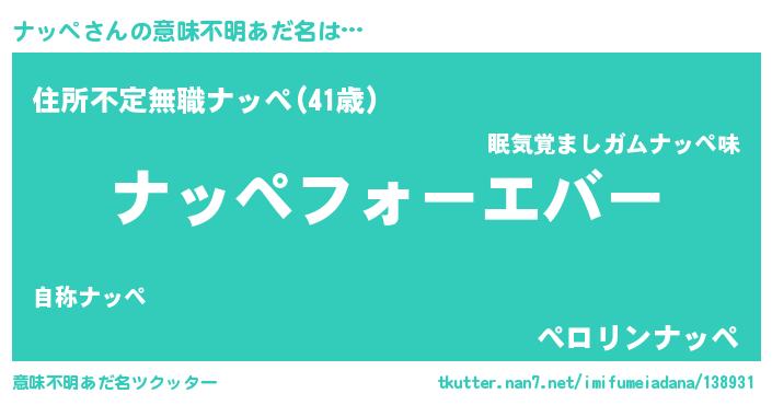 | ファンタジー風あだ名 | 『エターナルナッペー』『ヴァルナッーナ』 |