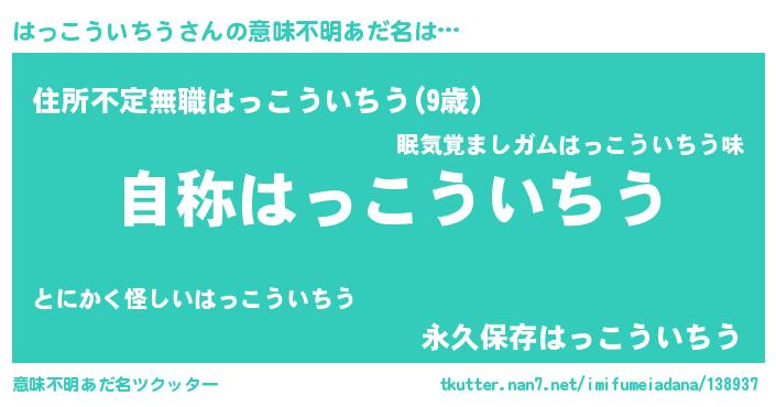 | 欧米人風あだ名 | 『はっこういちう・ステッグマイヤー』 |