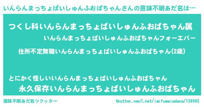 | 伝説のあだ名 | 『古文書に記された吟遊詩人いんらんまっちょばいしゅんふおばちゃん』 |