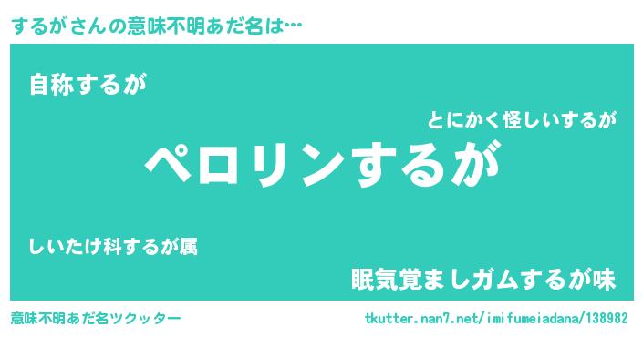 | ヒーロー風カッコイイあだ名 | 『スーパースルガ』『超時空戦士スルガ』 |