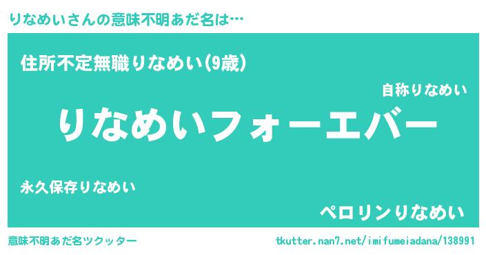 | 欧米人風あだ名 | 『りなめいクリステル』 |