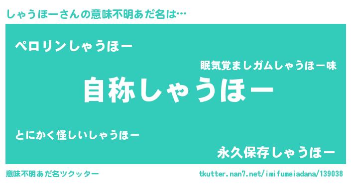 | 肩書あだ名 | 『しゃうほー総統』『しゃうほー店長』 |
