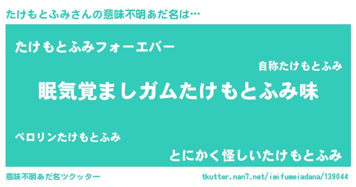 | 肩書あだ名 | 『たけもとふみ船長』『たけもとふみ団長』 |
