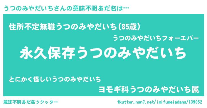 | ヒーロー風カッコイイあだ名 | 『ネオウツノミヤダイチ』『仮面ウツダー』 |