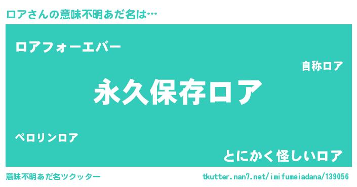 | ヘコむあだ名 | 『ロア(苦笑)』『レバニラ』『ロアを』 |