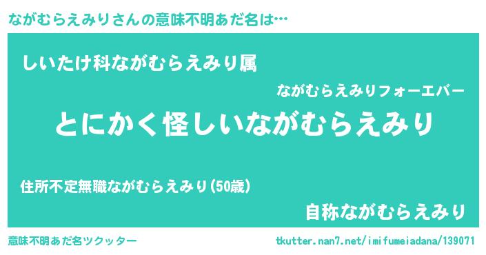 | 男性向けラノベタイトル風あだ名 | 『ながむらえみりに滅ぼされるだけの簡単なお仕事です』 |