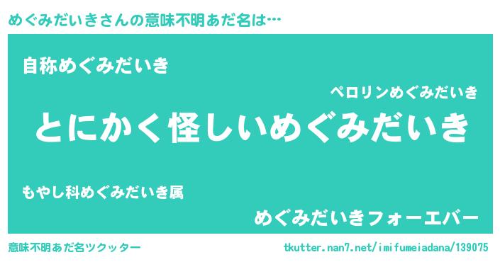 | ポケモン風あだ名 | 『ヒメグミダイキ』『メグゴンZ』 |