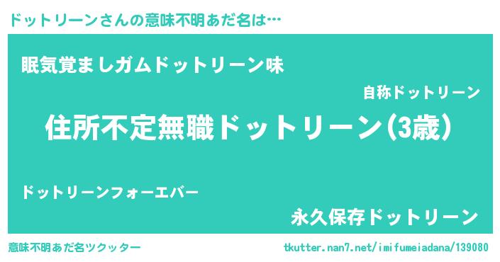 | 女子向けラノベタイトル風あだ名 | 『乙女ゲームの破滅フラグしかない悪役ドットリーンに転生してしまった…』 |