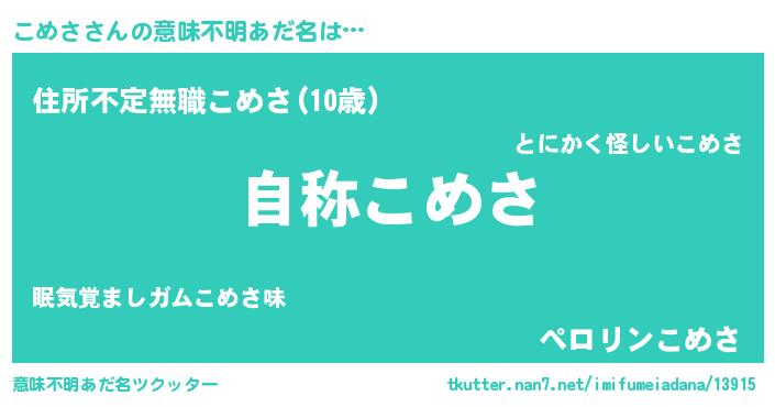 | 女子向けラノベタイトル風あだ名 | 『こめさストレイドッグス』 |