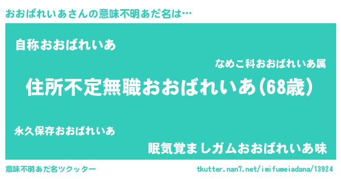 | 欧米人風あだ名 | 『アンジェラ・おおばれいあ』 |