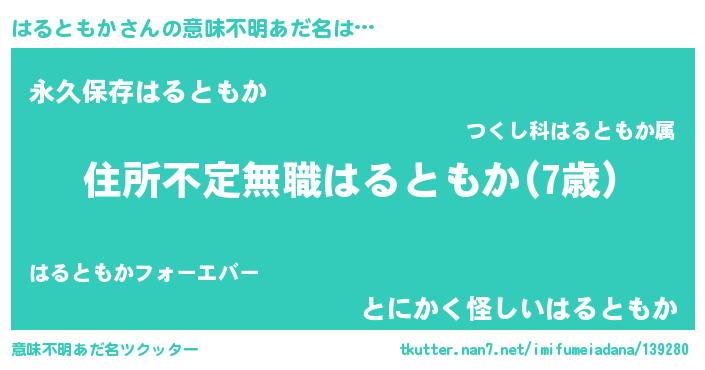 | ヘコむあだ名 | 『はるともか(笑)』『はるぷりん』 |