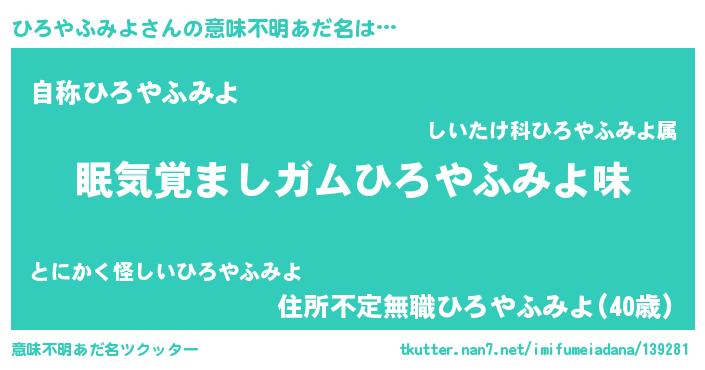 | 男性向けラノベタイトル風あだ名 | 『うちのひろやふみよが世界を掌握している!』 |