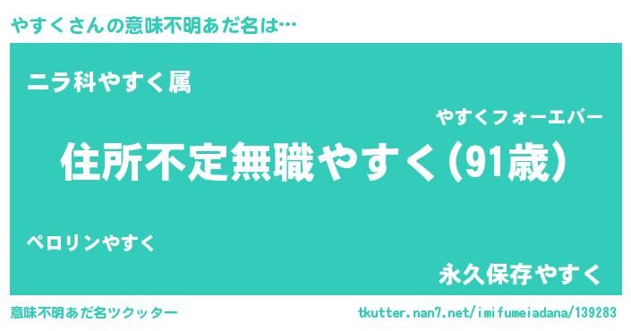 | 男性向けラノベタイトル風あだ名 | 『やすくに滅ぼされるだけの簡単なお仕事です』 |